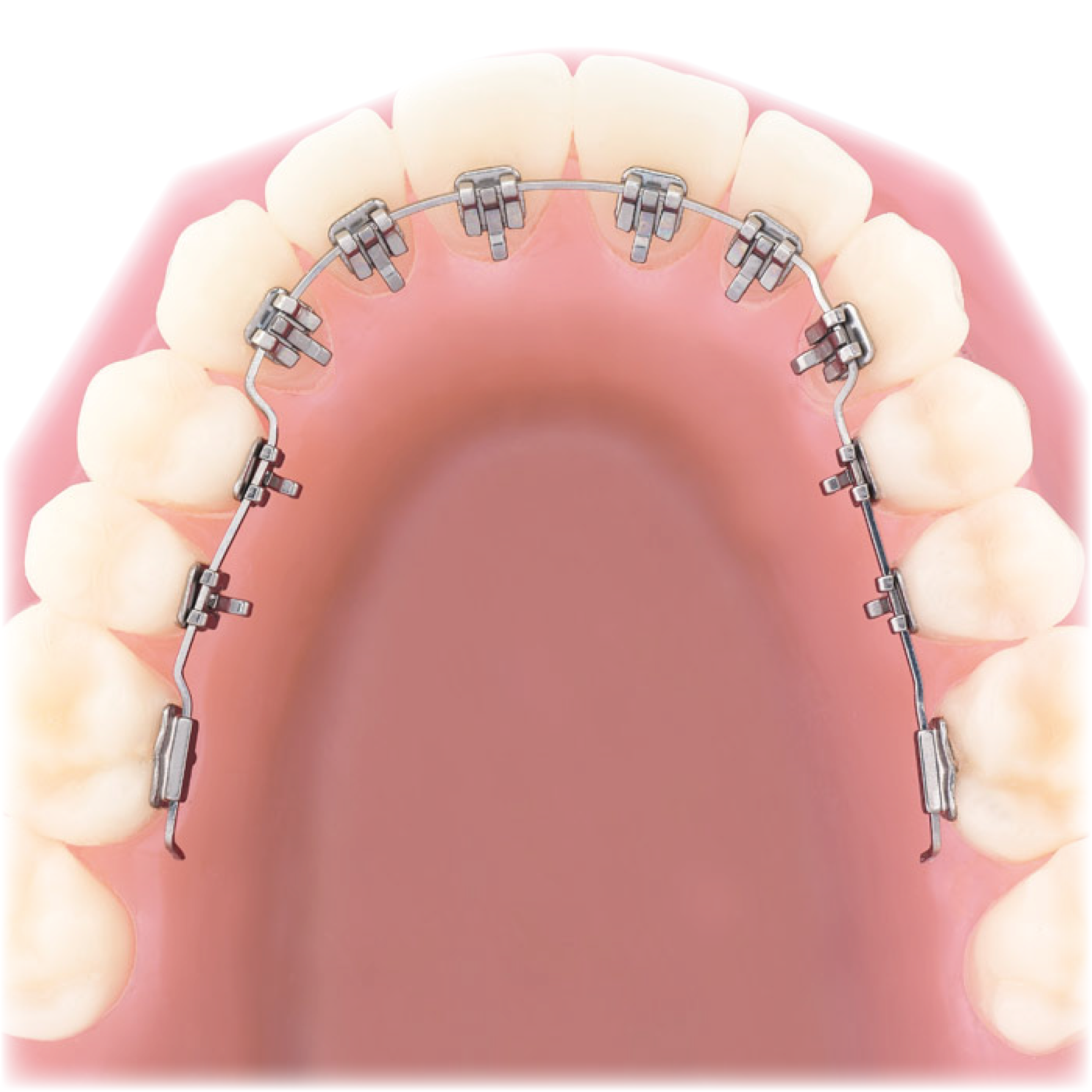 Invisible sauf pour les «chainettes de dérotation», ou en cas d’espaces entre les dents.